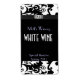 Elegante Zuhause machte Weinetiketten bereit für Sie, um mit Ihrer eigenen Monogramm und Informationen zu personalisieren. Grafisches Kunstwerk eines schwarzen Labels, mit einem schwarz-weißen Damast-Design oben und unten und einem schwarzen Band in der Mitte, mit einem silberfarbenen Monogramm-Bereich. Ideal für Zuhause-Weine. Passen Sie an, ob Sie zum Ändern der Textfarbe oder des Schriftartes gewollt haben.