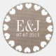 Monogramm-Hochzeitsticker | Einbruchstruktur. Maßgeschneiderter Umschlagsieb. Niedliche Idee für Hochzeitseinladungen, Gastgeschenke Hochzeiten und Dankeschön-Karten. Fügen Sie einen eleganten Namen Anfangsbuchstabe der Braut und Bräutigam. Mit Monogramm Liebe Zeichen für rustikale Landschick Hochzeit.