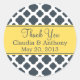 Karkohlequartfolienmuster auf weiß. Mit Monogramm Holzkohle und weißes Quarrefolienmuster mit gelben Dankeschön-Aufklebern.