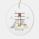 Exquisite, funny, monogram Artistic. Here is the letter "T" Neoplasticism style, or De Stijl, line and color artistic decoration, the funny bird sits on the letter. The field of art is located under the letter. Die Template name is located under the image. Two template texts on either side of the image. Neoplasticism Art Image on the back. Fourteen template are placed over the image. You can change or delete all the texts, and you can change both images independently. Einmalig, one-of-a-kind ornament for your event, party, celebration. You can transfer this design to another product of your choice. Feel free to use the "Edit Design" oder "Personalize"(as the case may be) button of the blue color to change the font, color, or position of the template text, or to adjust the design to the shape and size of the chosen product. Be creative, customize, buy one und be happy!
