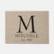 Gewohnheit addieren Ihr eigenes Monogramm, Initiale, Familienname- und Hochzeitsjahrestag oder Geburtstagsdatums-Imitatjutefaserchictürmatte Land Leinenleinwand rustikalen Chic schäbige.