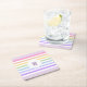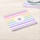 Monogramm in der weiß-Circle-Pastel-Rainbow-Streif Rechteckiger Pappuntersetzer