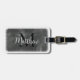 Gepäckanhänger in weiß, schwarz und grau. Bearbeiten Sie den Initial und den Namen, um ihn personalisiert zu machen. Geschenkidee.