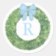 Monogramm Initial Inside Boxwood Wreath with Bow Runder Aufkleber
