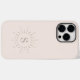 Eleganter iPhone-Gehäuse mit dem Monogramm-Initial in einem Rahmen von Radialpunkten, die einer Sonne ähneln. Sehr hellbraun auf matt rosa. Farben können mit dem Designwerkzeug angepasst werden.