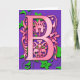 Der Buchstabe B auf einer elegant dekorativen Karte. Rosainitiale auf einem violetten Hintergrund, mit grünem Laubdetail. Verfügbar auf Grußkarten, notecards oder Postkarten. Umschläge eingeschlossen mit Gruß oder notecards (keine Umschläge mit Postkarten), leeres Innere. Kauf in der Masse und retten.