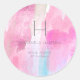 Monogramm Iridescent Pink Rose Pinselstrich Wasser Runder Aufkleber
