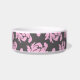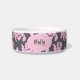 Rosa Katzenschüssel des Monogramms mit hübschem rosa Damasthintergrund und einem Platz können Sie Ihre Katzen addieren, die dieses einen noblen Haustierschüsselentwurf machend Namens sind. Verwenden Sie Ihr für einen Kittywasserteller, Nahrungsmittelteller oder Catchall für alle Ihre Katzen-Leckereien.