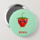 Monogramm Kawaii Erdbeerfrüchte auf Türkis Button
