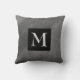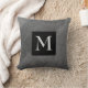 Dieses Monogramm Kissen für den benutzerdefinierten Auswurf hat einen abstrakten Hintergrund in Holzkohlegrau mit Texten für Wohngestaltung und Accessoires.