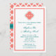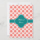 Mit Monogramm Korallenrosa und aquamarines Vierblattmuster. Polterabendeinladungen.