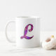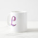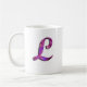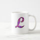 Kundenspezifisches Monogramm L in einem Skript-Schriftart in den Schatten von rosa, von Blauem und von Lila.