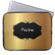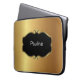 Monogrammlaptophülse mit simuliertem Goldmetallischem Hintergrund und Monogrammemblem, die Sie mit jedem möglichem Namen personifizieren können, Initialen oder Mitteilung. Dieser Entwurf schützt Ihre tragbare Elektronik wie Ihr netbook, Laptop oder Tablette in der schillernden Art und macht es Ihre Selbst. Entworfen für Damenmänner die wie extravagante Entwürfe.