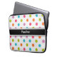 Laptopkasten mit buntem Monogramraum für Ihren Namen oder Initialen und buntes Tupfenmuster mit Reißverschlussschließung. Niedlicher Laptopkasten für das Schützen Ihres mobilen Computers in der Art.