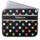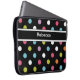 Laptopkasten mit Monogramraum für Ihren Namen oder Initialen und bunte Tupfen auf schwarzem Muster mit Reißverschlussschließung. Cooler Laptopkasten für das Schützen Ihres mobilen Computers in der Art. Modern und Spaß, die Sie genießen, Ihren Laptop überall zu tragen.