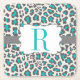Monogramm-Leopard-Aqua-grauer Weißbuch-Untersetzer Rechteckiger Pappuntersetzer