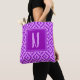 Tragen Sie Ihre Sachen in diesem Monogram Lila Dreistecker Diamond Muster Tote Beutel. Es zeichnet sich durch ein geometrisches Rautenmuster in drei Farbtönen lila aus, mit einem initialen Licht lila gegen ein dunkles lila Quadrat. Personalisieren Sie es mit Ihrem ersten. Eine tolle Geschenkidee für einen stilvollen Shopper.