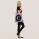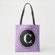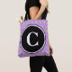 Chic reversibel gelbe Polka Punkte auf lila Hintergrund. Der Vordersack hat einen großen schwarzen Kreis, um mit Ihrem mit Monogramm Original in weißem Text zu personalisieren. Helle trendige geometrische Damenmode für Frühling und Sommer. Original Designs © TamiraZDesign. www.zazzle.com/tamirazdesigns