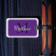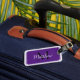 Gepäckanhänger lila. Bearbeiten Sie den Initial und den Namen, um ihn personalisiert zu machen. Geschenkidee.