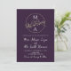 Elegante, moderne, minimalistische, einfache lila Hochzeitseinladung mit einzigartiger Monogramm mit handgezeichnetem Paar Liebesvögel UAWG und QR-Code hinten.