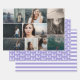 Personalisierte Verpackungspapiere, ideal für Abschlüsse oder 16 . Geburtstag-Feiern, mit einer Foto-Collage, in der Sie 11 Ihrer eigenen Fotos hinzufügen können, einem Verpackungspapier mit Initialen in Weiß auf lila Hintergrund und einem mit lila und weißen Streifen.
