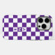 Das coole iPhone Gehäuse weist ein fett lila und weißes kariertes Muster mit einer anpassbaren Monogramm auf. Fügen (oder löschen) Sie 3 Initialen oder Zahlen in der Sidebar, um sie zu personalisieren. Das geometrische Schachbrettmuster besteht aus Reihen abwechselnd weißer und königlicher lila Quadrate. Andere Gehäusetypen und Modelle sind auch in der Sidebar erhältlich. Klicken Sie auf den Link "Rocklawn Arts", um mehr Lila und weiße Gegenstände zu sehen.