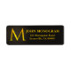Elegante, benutzerdefinierte Gold Color Monogram M Rücksendeadressen-Aufkleber. Einfache und einfach zu bedienende Vorlage.