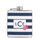 Monogramm-Masche für Navy Strip und Rosa Peony Flachmann