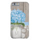 Hübsche blaue HYDRANGEA-Kunstwerke mit Holzzaun, antikem Damast-Muster Spitzen-Hintergrund und geheftetes, blaues Banddesign. Das Mason-Glas mit den Blume kann mit dem ersten und dem ersten Buchstaben Ihrer Monografie mit Monogramm werden. Elegante und feminine rustikale Eleganz, Land, Bauernhof, Gartenhaus, Party oder Barnyard-Stil Details. Entworfen von Chrissy H. Studios, LLC. Alle Rechte vorbehalten.