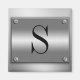 Silber gebürstet und glänzend Metall 3D Rahmen mit Schrauben in einem Chrom glatten starken Oberflächenhintergrund. Einfach personalisieren, indem Sie ein Monogramm, ein Initial oder einen Namen hinzufügen. Der Buchstabe S. Ein großartiges Magnettafel für Auszeichnungen, Medaillen, etc. Beachten Sie, dass dieses realistische Design ein bedrucktes Design ist, nicht wirklich Metall.