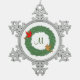 Monogramm mit Kardinälen im Evergreen Kranz Schneeflocken Zinn-Ornament