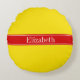 Monogramm mit rotem, gelbem Ribbon Rundes Kissen
