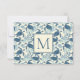 Diese inspirierte Note-Karte an der Küste weist ein Muster von Meeresschildkröten und Korallen in Blau- und Cremetönen auf und personalisieren Sie das passende Monogramm mit Ihrer Wahl des Anfangs.