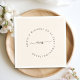 Monogramm, modern, minimalistisch, beige Hochzeitsserviette. Personalisiert mit Ihrem Namen und Datum. Mit schwarzem Schriftart, gekrümmt, Monogramm. Ihre Namen, Datum und Hochzeitsort sind in einem Kreis um das Monogramm geschrieben.