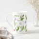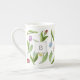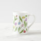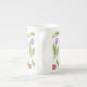 Das Produktdesign zeichnet sich durch farbenfrohe Tulpenmuster in lila, roten, rosa, blauen und gelben Blume aus. Diese botanische Abbildung mit personalisiertem Text macht eine moderne und einzigartige Knochen-China Tasse.
