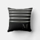 Monogramm Moderne Silberstreifen auf schwarz Kissen