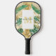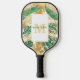 Monogramm moderner goldgrüner tropischer Blätter Pickleball Schläger