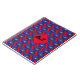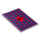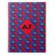 Rotes Notizbuch mit handgezeichneten blauen Motorrad-Helmen bedruckt, oben mit einem Monogramm Diamant, um Ihre Initialen hinzuzufügen