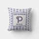 Dieses Monogramm-Kissen ist eine großartige Möglichkeit, einen farbenfrohen Akzent in Ihre Zuhause zu fügen oder einen besonderen Sake für eine Hochzeit oder eine Hauswärmung zu schaffen. Ein blau-grauer Polka-Punktmuster erscheint vor einem hellblauen Hintergrund auf der Vorderseite und der Rückseite dieses Kissens. Der Buchstabe "P" wird zusammen mit dem Familiennamen und dem Jahr in einem Quadrat angezeigt. Der Buchstabe, das Jahr und Ihr Name können schnell und einfach personalisiert werden. Original Design - C. McGouldrick