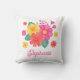 Passen Sie dieses hübsche Kissen mit Ihrem Namen an. Es zeichnet sich durch ein originelles, modernes Blumendesign mit rosa, orangefarbenen und gelben Blumen aus.
