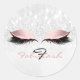 Monogramm Name Glitzer Rosa Augentropfen Mädchen 1 Runder Aufkleber