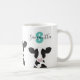 Eine Monogramm-Tasse, die Ihren Namen und Ihre Kuh-Illustrationen enthält. Die Tasse ist aquamarin, weiß und schwarz gehalten. Einfach Name und Monogramm anpassen, diese Tasse in den Warenkorb legen und die Kühe mit jedem warmen Getränk genießen. Monogram Name Cow Aquamarine Schwarz-weiße Animal Coffee Tasse Holidayday Design | ©Melissa Patton - Künstler/Illustrator