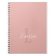Modernes, rosafarbenes mit Monogramm Notizbuch mit einem personalisierten Notizbuch mit weißer, eleganter Unterschrift.