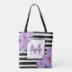 Monogramm Name Rosa Blume Schwarzer Streifen Tote