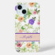 Diese florale Aquarell iPhone Gehäuse hat rosa Blume, pfirsichfarbene Blume, violette Blumen, auf einem Feld von grünen Blätter. Fügen Sie Ihren Namen hinzu, um diesen Fall zu personalisieren und Ihren eigenen zu machen.