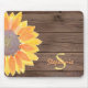 Monogramm Name Rustic Sunflower Wood Mousepad