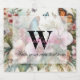 Monogramm mit Namen und tropische Blume und Blätter und Schmetterlinge Aquarell Anpassbare Monogramm mit individualisierbarem Namen in einer helleren Farbe, auf tropischen Blume und Blätter, die ein luxuriöses tropisches Blattwerk bilden, und auch Schmetterlinge, mit pastellfarbenen Aquarell.