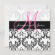 Elegante Monogram Damask Wedding Invitation.Fully Customizable Wedding Invitations.com und WhiteWhimsicalWeddings.blogspot.com. Passen Sie Ihre Monogramm-Namen und Hochzeitsfarben an. Fügen Sie alle Ihre Hochzeitsinformationen auf der Rückseite der Karte mit Zazzle's einfach zu bedienenden Menüaufforderungen. Design von Elke Clarke ©2011. Zur Verwendung lizenzierte Grafiken. Keine Doppelarbeit erlaubt.