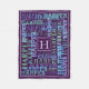 Ein Spaß und ein einzigartiger Name bewölken die Fleecedecke, die Ihr oder den individuellen Namen Ihrer Geschenkempfängers in einer Vielzahl von Farben gegen einen lila Hintergrund kennzeichnet. Innerhalb aller dieser Namen zentriert eine Stelle für ein mutiges stehen heraus Monogramm von ihrem ersten oder Nachname. Sie können die Kundenbezogenheitsfunktion auch verwenden, um die einzelnen Namen zu bewegen gegebenenfalls.