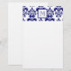 Monogramm, Navy Blue Damask Muster 2 Briefpapier